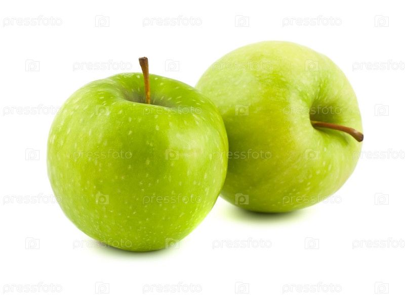 Два зеленых яблока на белом фоне