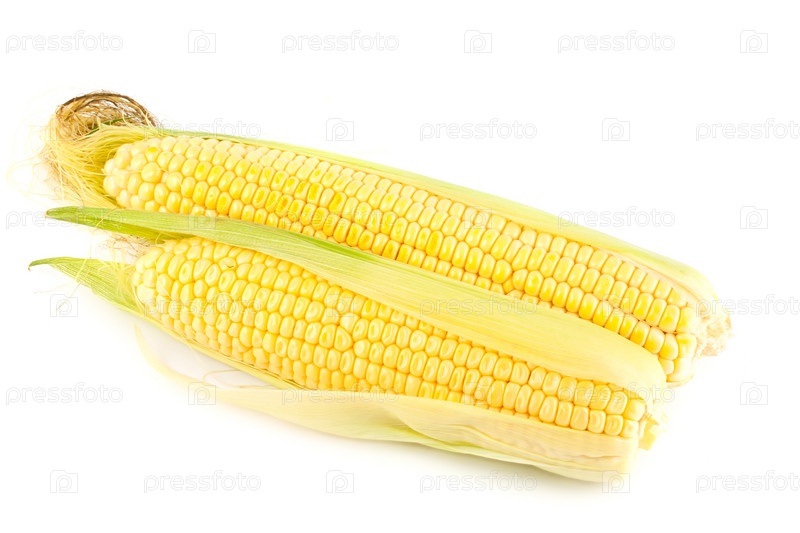 Два кукурузных початка на белом фоне