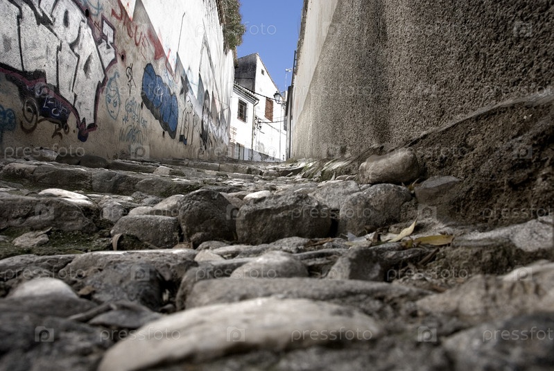 Мощеной улице в Альбайсин, Гранада, Андалусия, Испания