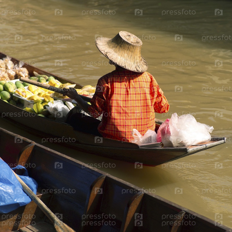 Продажи фруктов в лодке на Плавучий рынок, Бангкок, Таиланд