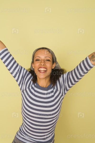Портрет женщины с руки в воздухе