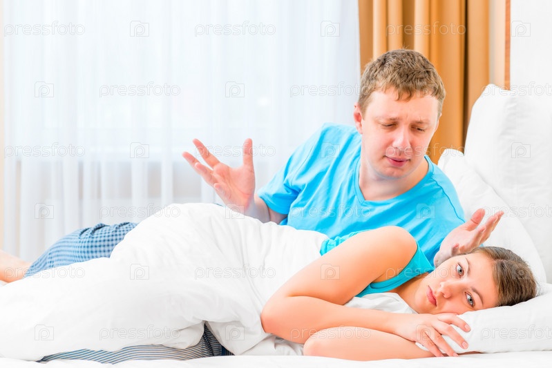 Человек ругает свою жену в постели ночью