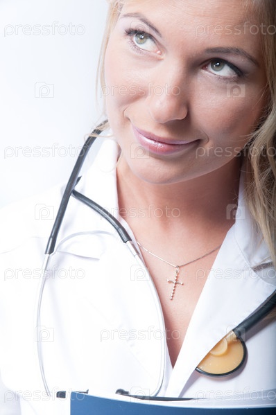 Портрет женщины-врача на белом фоне