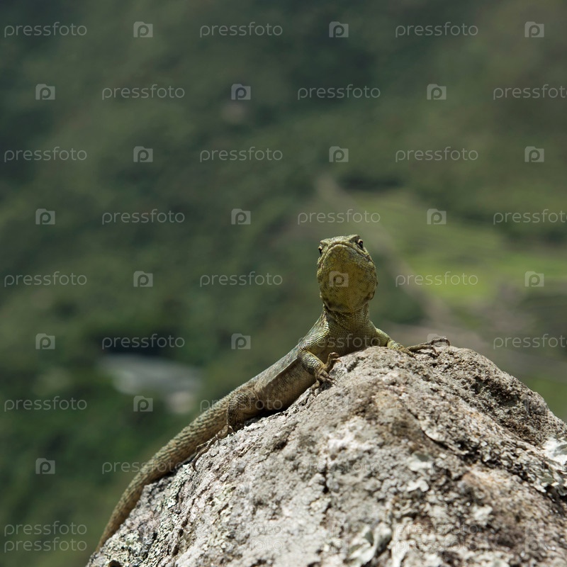 Крупным планом ящерица на камне, Мачу-Пикчу, регионе Куско, Перу