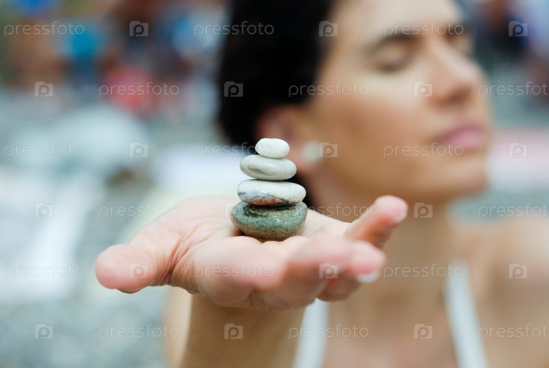 Женщина, держащая галька