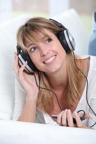 Счастливая женщина, прослушивания музыки дома