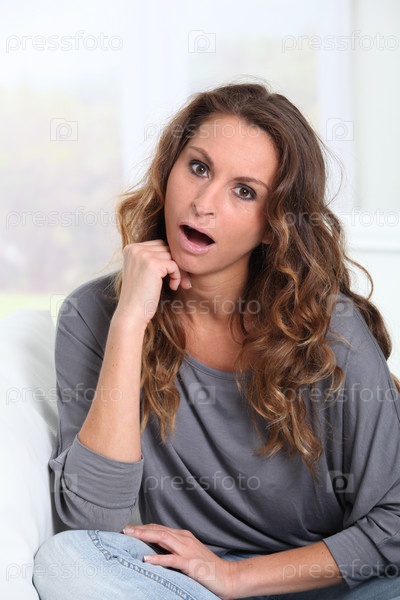 Портрет женщины с удивлен смотреть