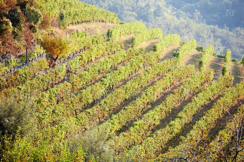 Пейзаж с виноградниками в летнее время, холмов Пьемонта, Северная Италия