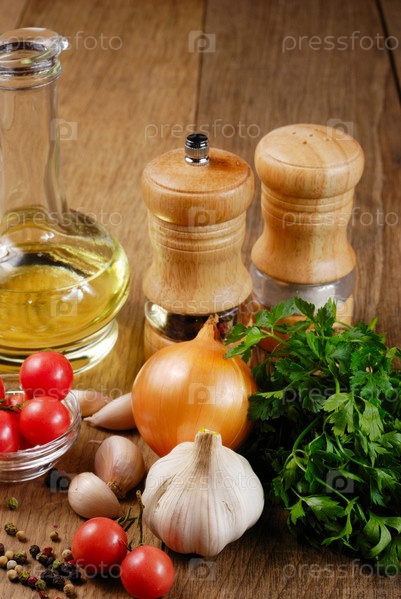 Пищевые ингредиенты на дубовый стол крупным планом выстрелил