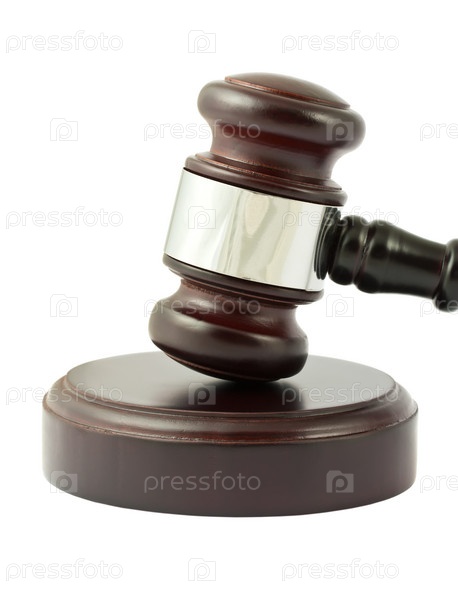 Судейский молоточек на белом фоне