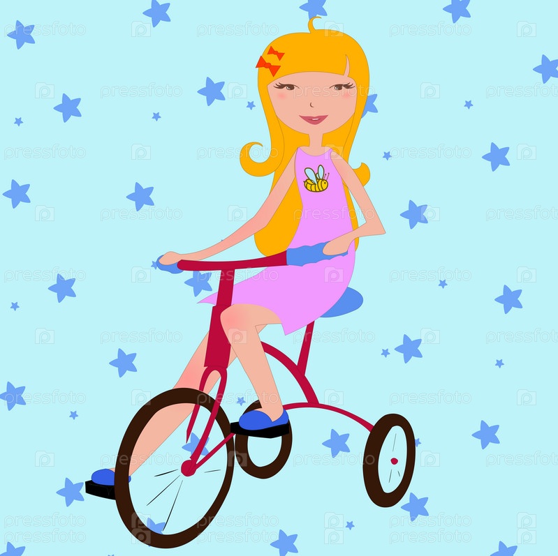 Маленькая девочка, езда на велосипеде