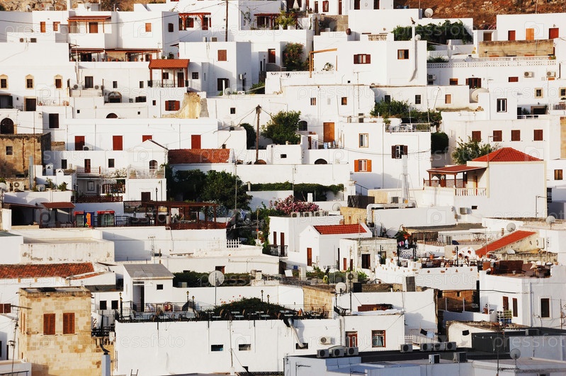 Посмотреть на старый греческий город Линдос, Родос, Греция