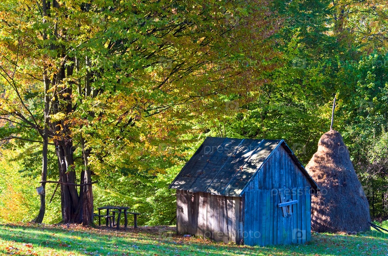 Деревянный домик в осеннем лесу