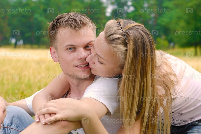 Молодая пара, весело на фоне природы