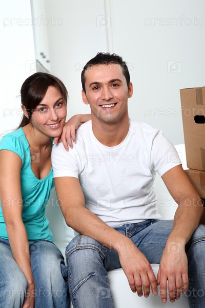 Молодая пара, переезда в новое место