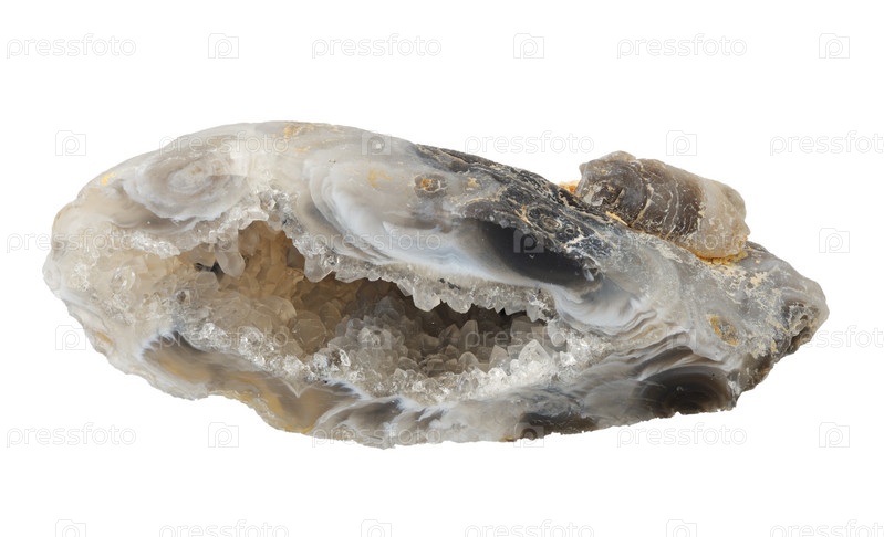 Осколок халцедона на белом фоне