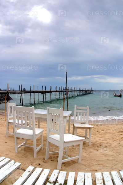 Белые стулья на пляже в Таиланде