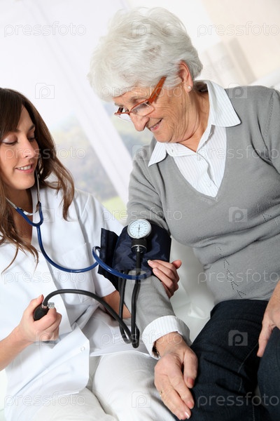 Медсестра, проверка старший женщина кровяное давление