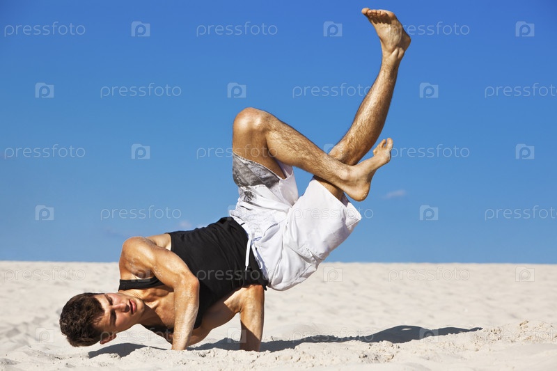 Молодой человек, танцы на пляже