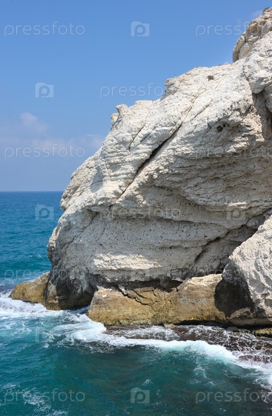 Белые меловые скалы Рош ха-Ханикра на северной границе Израиля