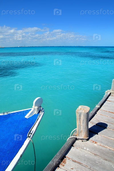 Лодка в деревянный пирс Канкун тропических Карибский пляж
