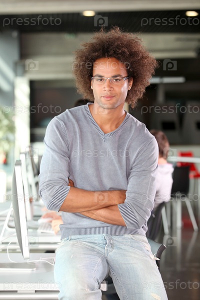 Крупным планом студента колледжа в компьютерной лаборатории