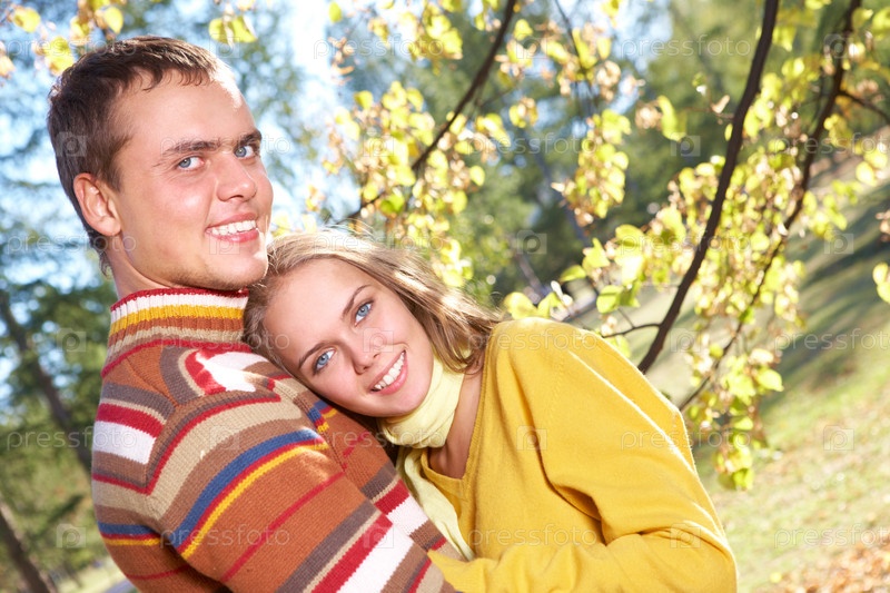 Влюбленная пара в осеннем парке
