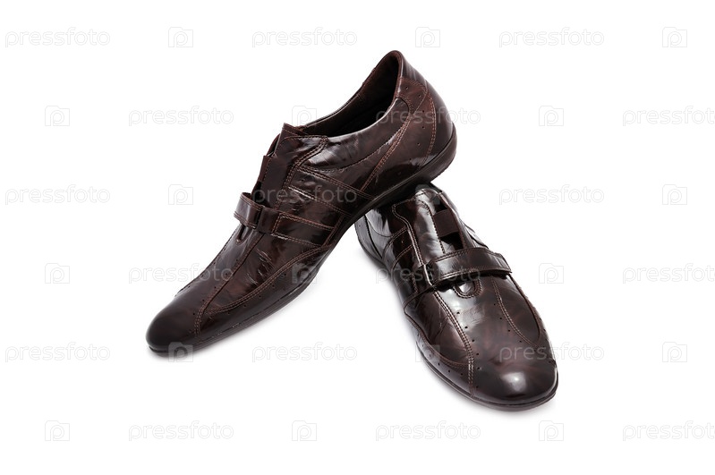 Коричневые мужские туфли на белом фоне