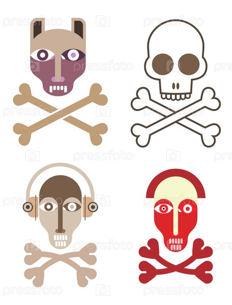 Череп и скрещенные кости, набор иконок, белый фон