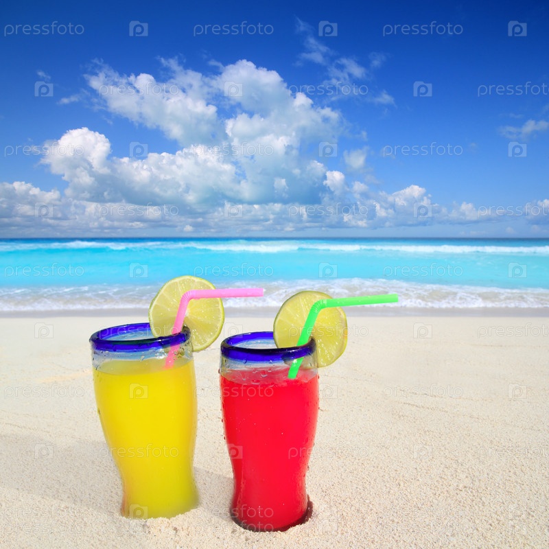 Пляж коктейли желто-красная в Карибского бассейна тропической бирюзовый морской песок