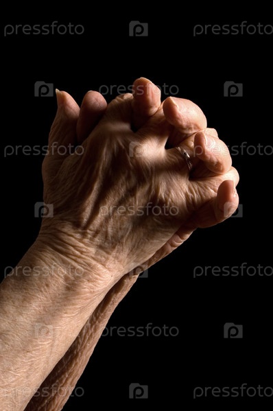 Руки старой женщины на черном фоне