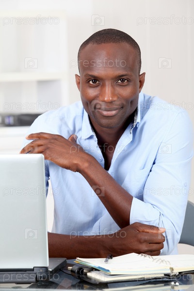 Офисный работник работает на портативный компьютер