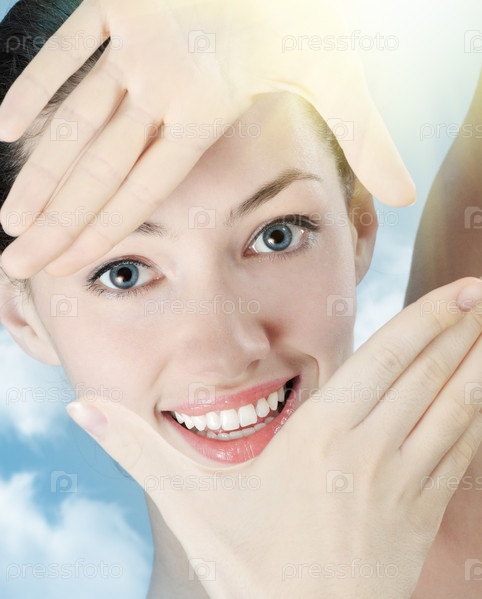 Девушка делает рамку из рук