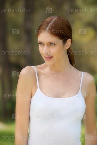 Красивая женщина, стоя в лесу