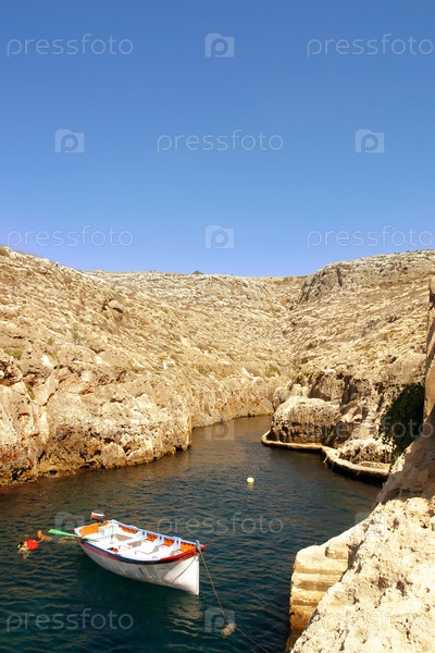 Ярко окрашенные Мальтийские лодки на голубой воде летом, Мальта