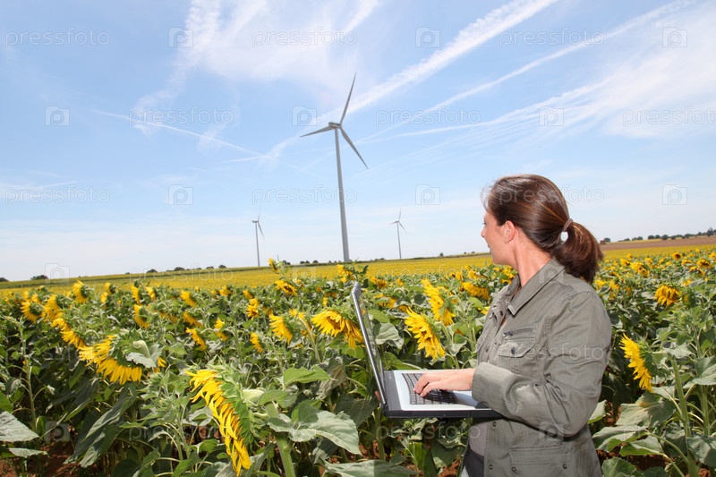 Агроном в поле подсолнухов