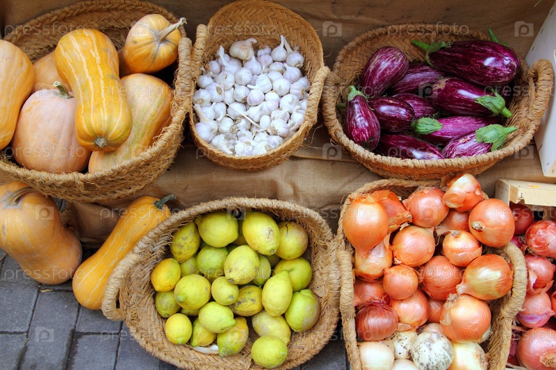 Фрукты и овощи чеснок лимон лук баклажаны покупательского