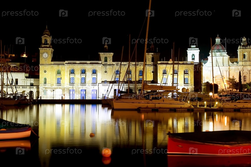 Яхты на Витториоза док противоположной Валлетта, Мальта