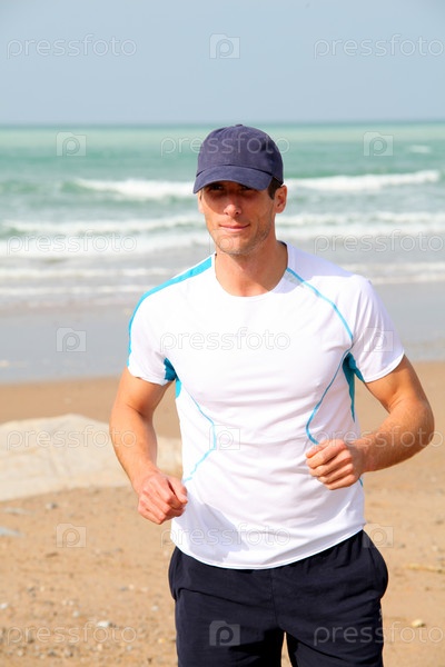 Спортивная(ый) человек работает на море летом
