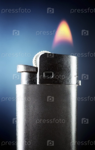 Зажигалка с горения пламени. На синем фоне