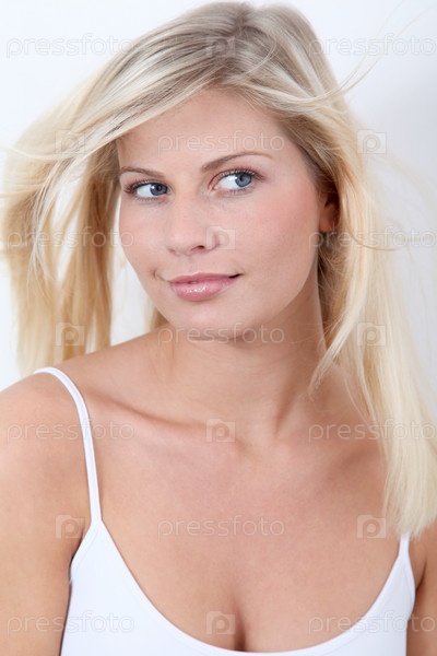 Красивая блондинка женщина на белом фоне