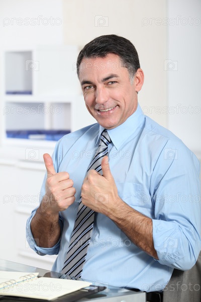 Человек в офисе, показаны позитивности