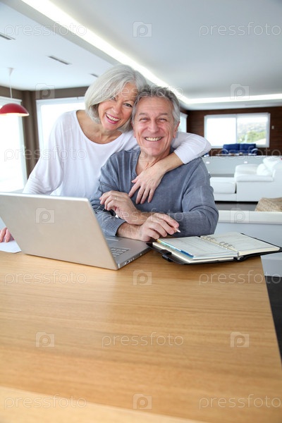 Пожилые супружеские пары, серфинг по Интернету на дому