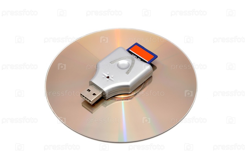 Диск и картаы памяти на белом фоне