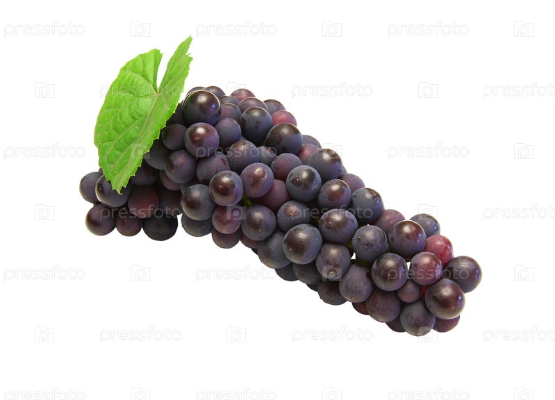 Темный виноград с зеленым листом, на белом фоне