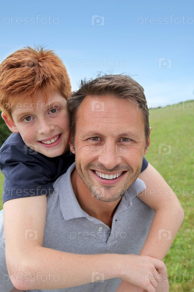 Крупным планом отца и сына в сельской местности