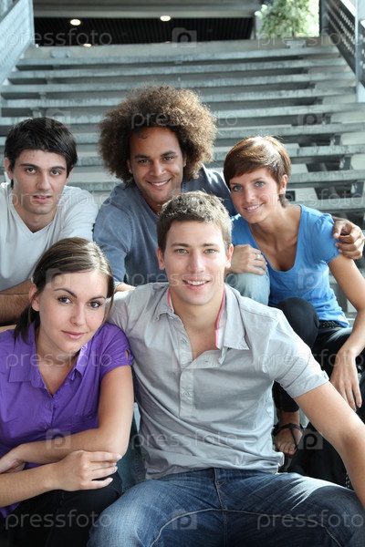 Группа счастливых молодых людей в университете