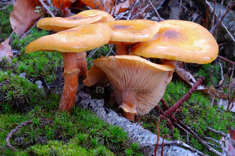 Дикие грибы в лесу поле с мускус