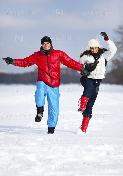Молодая пара счастливы прыжки на открытом воздухе