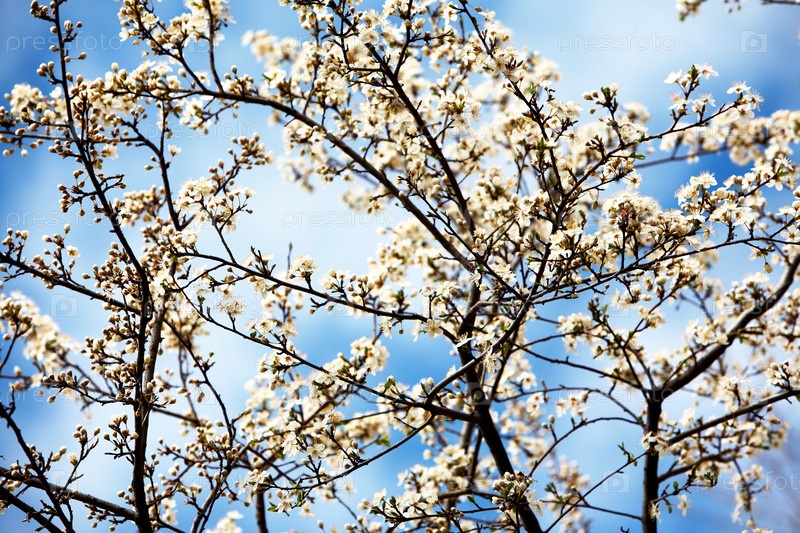 Цветущая вишня в начале весны, летнее